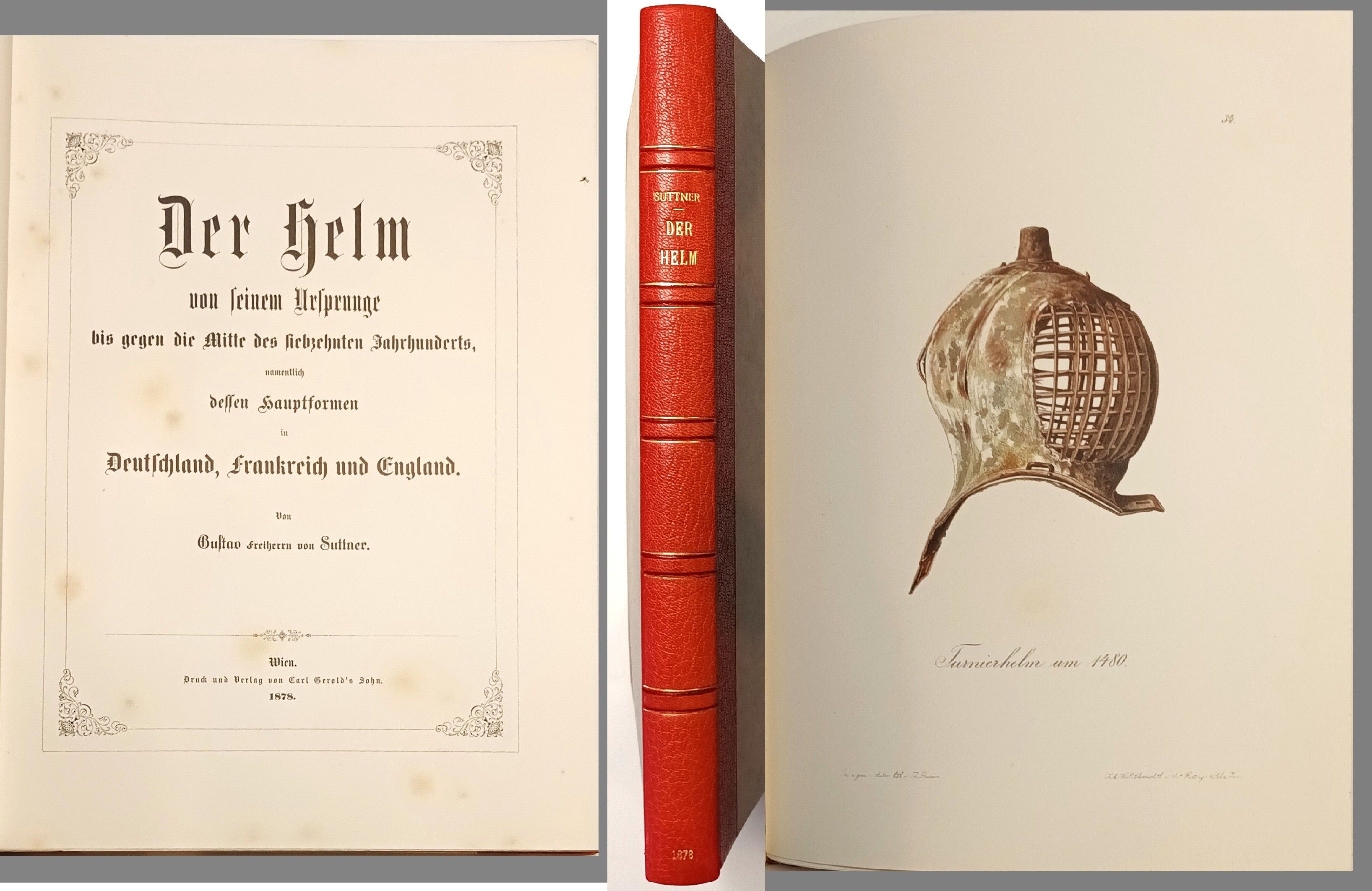 Informationstext: Der Helm von seinem Ursprunge bis gegen die Mitte des siebzehnten Jahrhunderts namentlich dessen Hauptformen in Deutschland Frankreich und England. Originalausgabe. Prunkausgabe mit goldgeprägtem roten Lederrücken. Sauber sehr gut. Leichte Altersspuren und partiell etwas stockfleckig. Versand als DHL Paket. Rechnung mit MwSt.