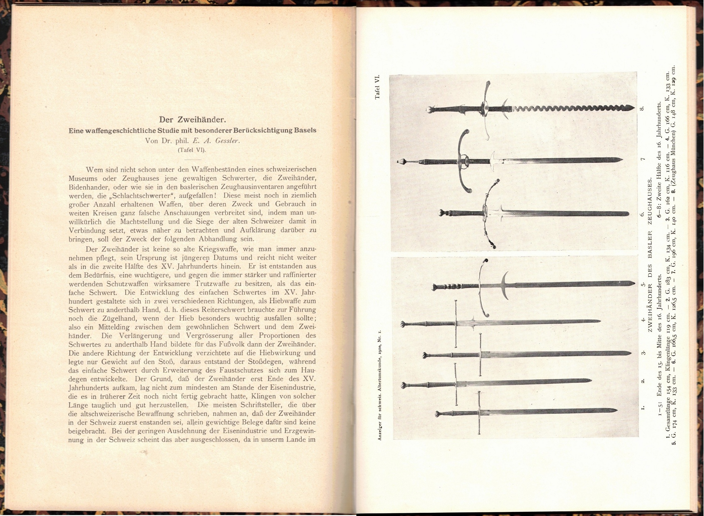 Gessler Waffenhistorische Schriften - Waffen der Schlacht von Sempach, Zweihänder, Lederkanonen