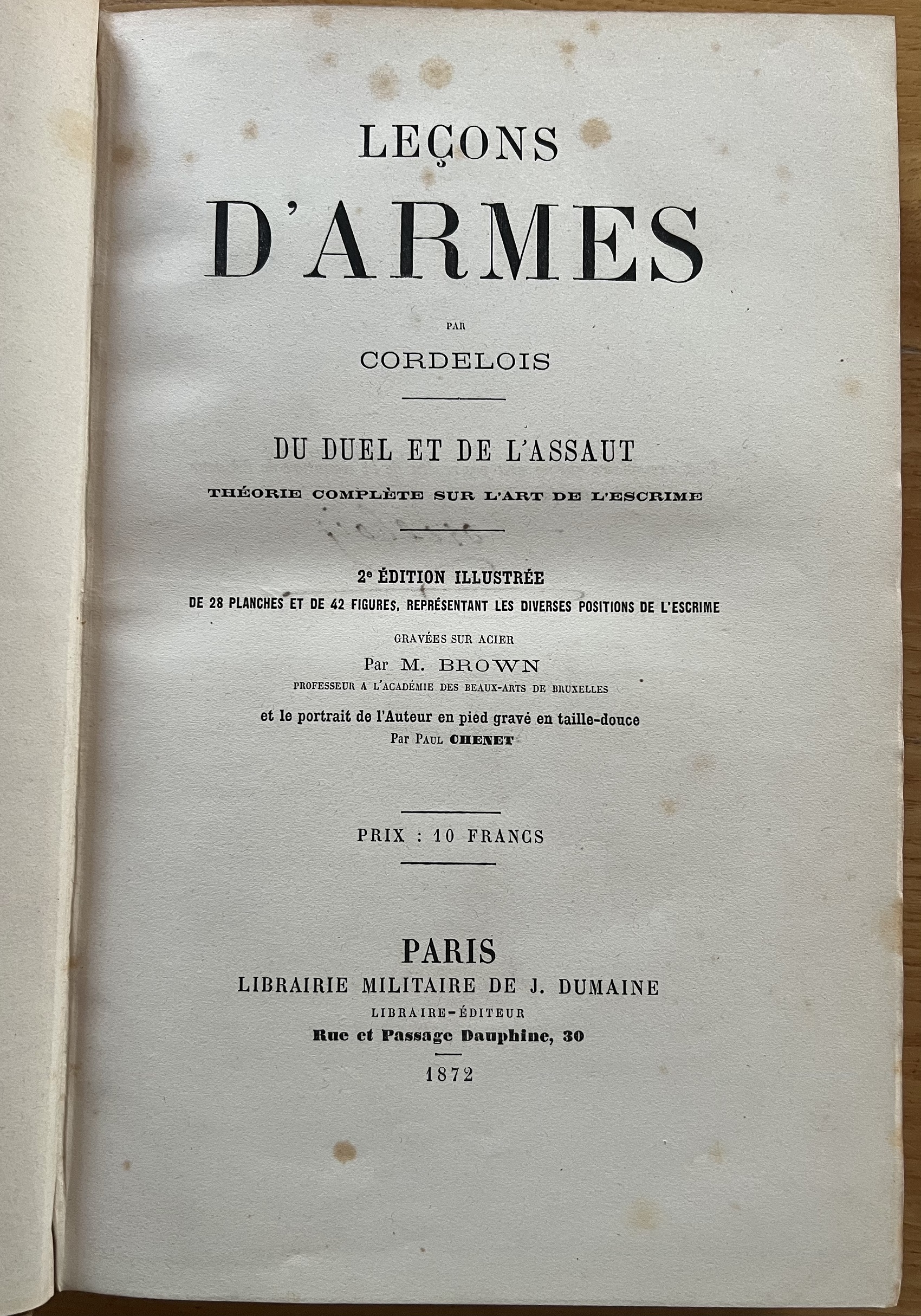 Lecons d'Armes par Cordelois. Du Duel et de L' Assaut.