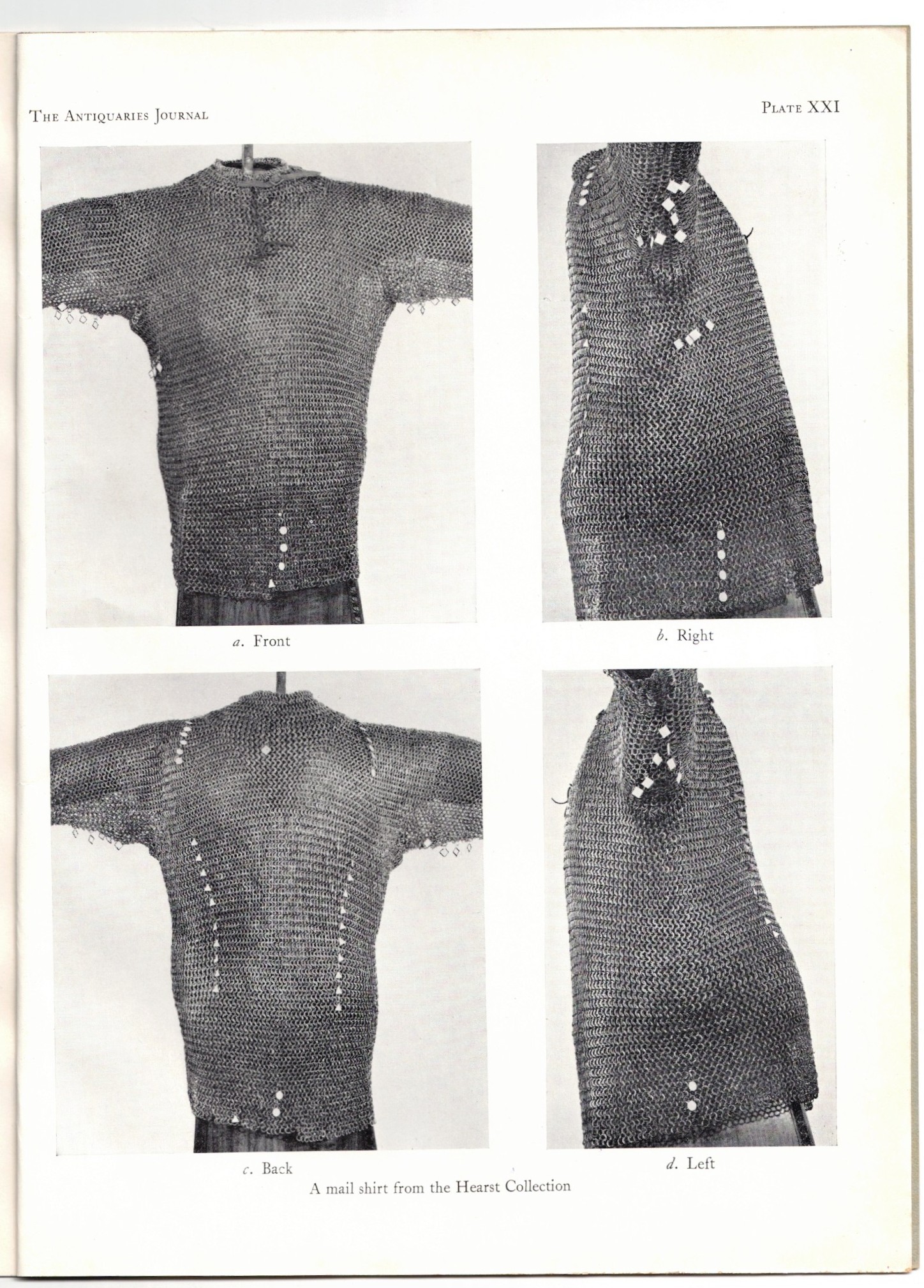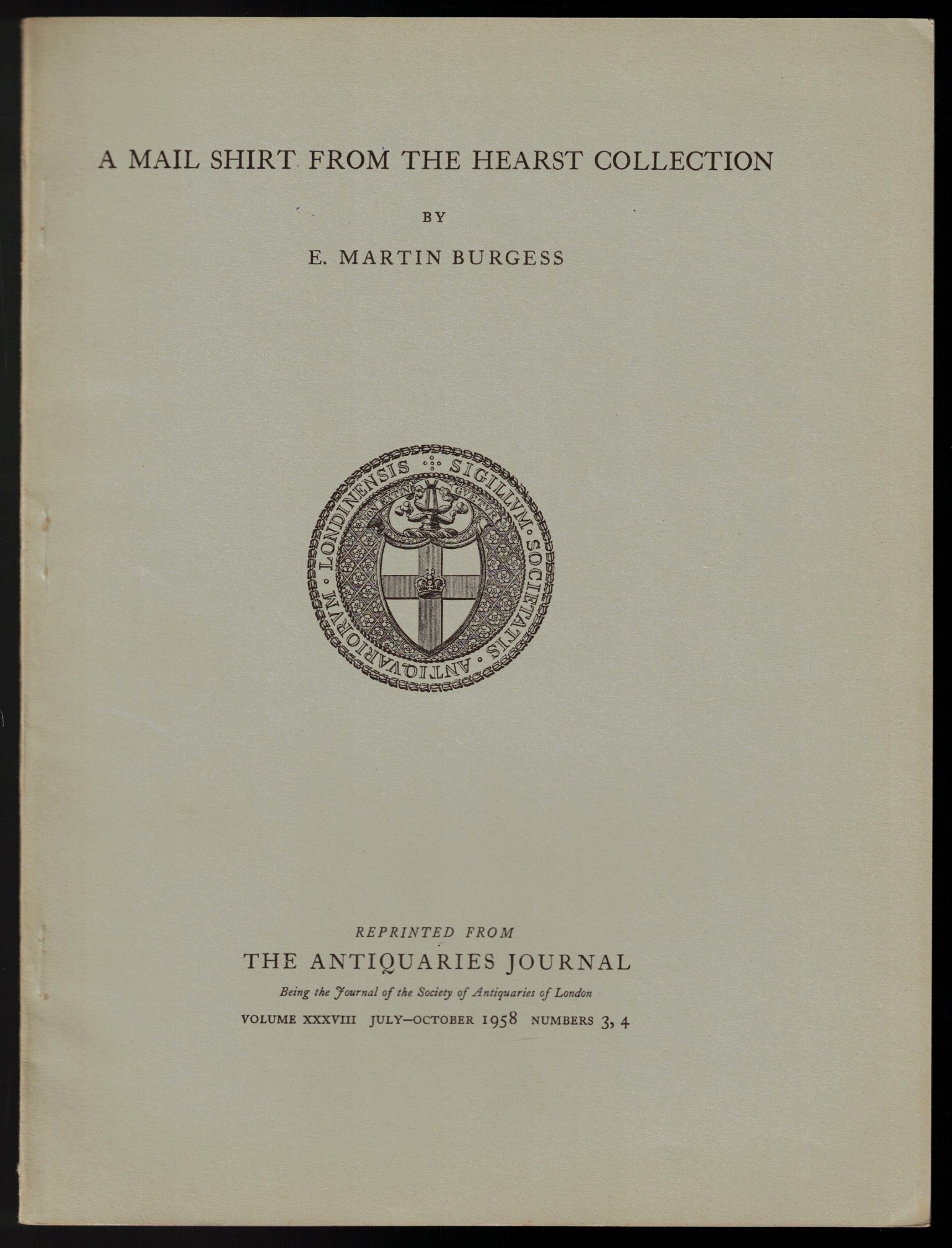 Informationstext: Zwei Hefte "The Mail Shirt from Sinigaglia" und "A Mail Shirt from the Hearst Collection". Reprinted from The Antiquaries Journal London Vol. XXXVII 1957 und Vol. XXXVIII 1958. Sauber sehr gut. Geringe Altersspuren. Versand mit DHL Paket. Rechnung mit MwSt.